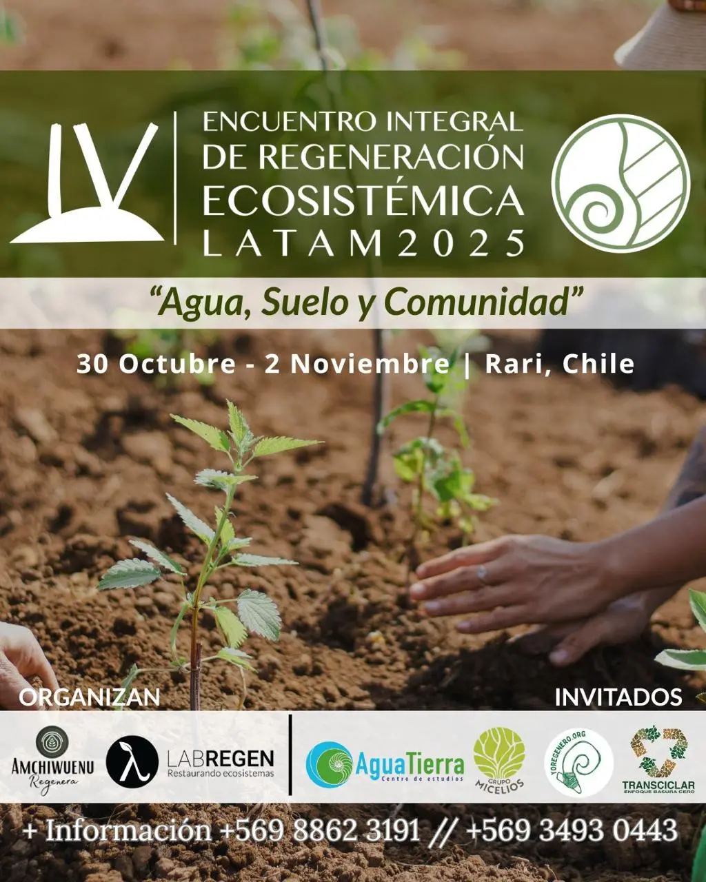 El propósito de este encuentro es crear una plataforma para el intercambio de experiencias de regeneración en Chile, enfocada de en agua, suelo y comunidad.